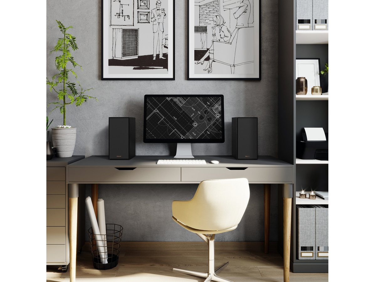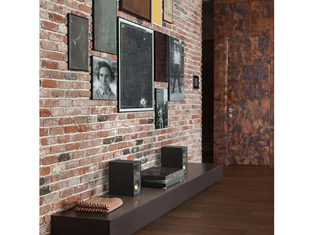 De R-40PM-drivna högtalarna ansluts via Bluetooth® för musikströmning, phono (med jordskruvterminal) för skivspelare, plus digitala och analoga för allt däremellan. Och eftersom Klipschs ingenjörer har byggt in en skräddarsydd förstärkare får du perfekt avstämda ljudupplevelser – ingen audio/video-mottagare (AVR) krävs.