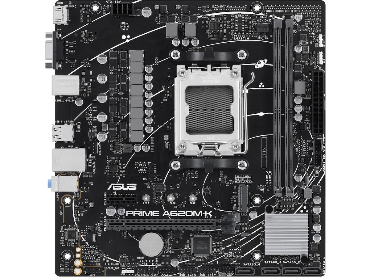 PRIME A620M-K är utformad med en rad hybridfläktkontakter och ett två ounces kopparkort för att säkerställa att din rigg hålls sval och stabil under intensiva arbetsbelastningar