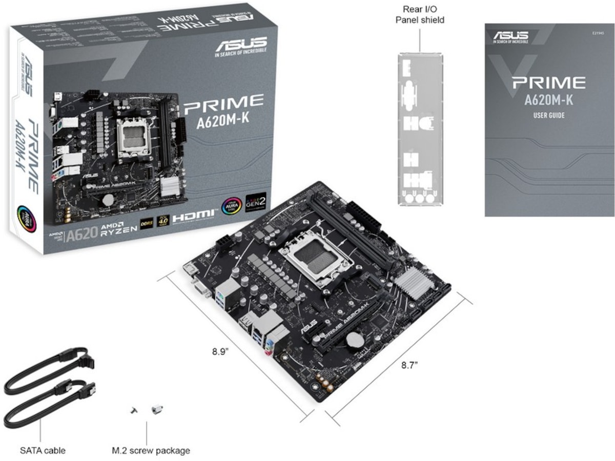 AMD A620 micro-ATX-moderkort, DDR5, PCIe 4.0 Grafikkort och PCIe 4.0 M.2-stöd, HDMI™, VGA, USB 3.2 Gen 1 Type-A, SATA 6 Gbps, Tvåvägs AI Bullerreducering, Aura Sync