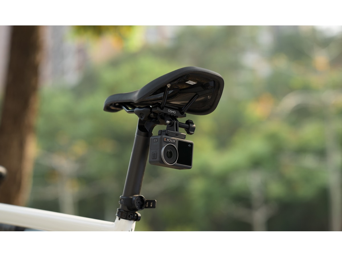 DJI Osmo Action Bike Seat Rail Mount Monteras enkelt i botten av cykelsätet. Registrera dina cykelresor enkelt. Tillverkad av en slitstark aluminiumlegering. Med den medföljande lilla insexnyckeln kan du enkelt montera den i botten av cykelsätet.