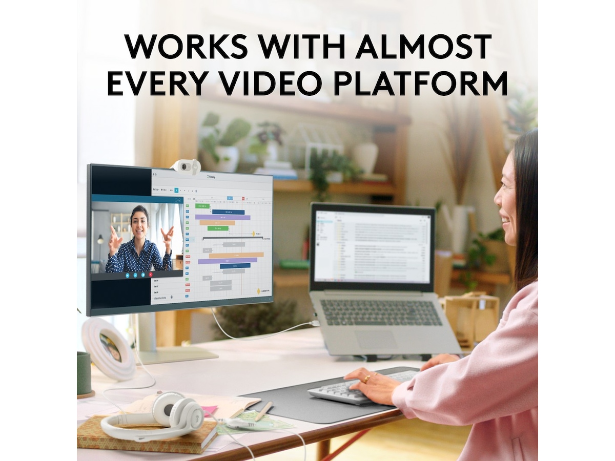 Brio 100 fungerer med de fleste videosamtaleplattformer, inkludert Microsoft Teams, Zoom og Google Meet