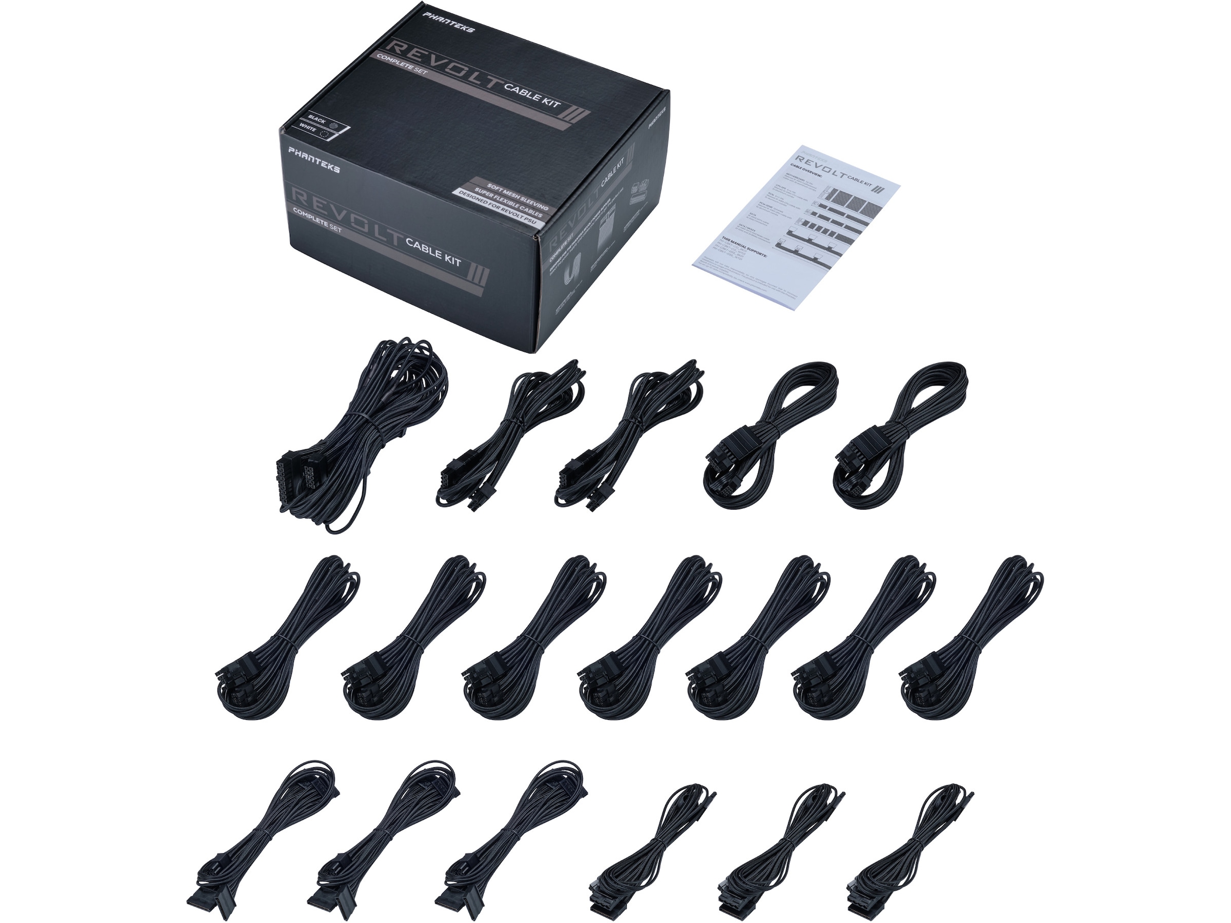 3 x strömkabel - 6-stifts Molex till 15-stifts seriell ATA ström x 2, 6-stifts Molex x 2 - 81 cm, 2 x strömkabel - 12VHPWR till 12VHPWR - 75 cm, 2 x strömkabel - ström 8 stift CPU till ström 8 stift CPU - 70 cm, 7 x strömkabel - 6 + 2-polig PCI Express-kraft till 6 + 2-polig PCI Express-kraft - 75 cm, 3 x strömkabel - 6-stifts Molex till 15-stifts seriell ATA-strömingång x 4 - 95 cm, 1 x strömkabel - ström, 24-pin ATX till ström, 24-pin ATX - 61 cm |
