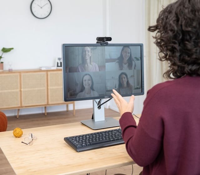 Det är bara att koppla in och börja spela in – med hjälp av det medföljande universella stativet som är lämpligt för både monitorer och skrivbordsytor.