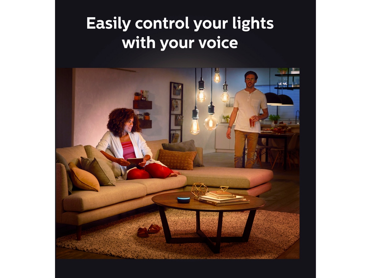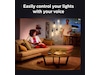 Philips Hue fungerar med Amazon Alexa och Google Assistant när de paras ihop med en kompatibel Google Nest- eller Amazon Echo-enhet. Med enkla röstkommandon kan du styra en enda lampa eller flera ljuskällor i ett rum.