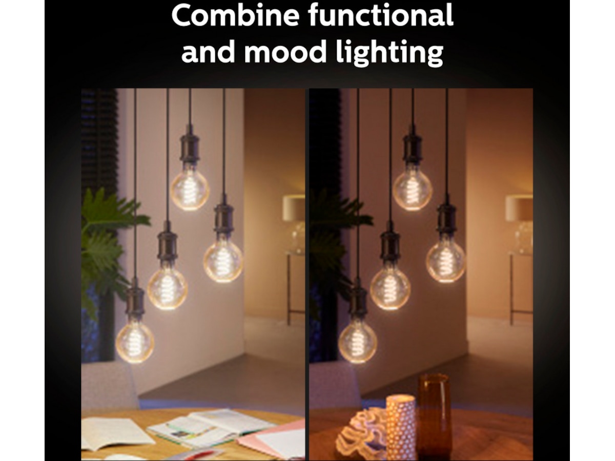 - Få tillgång till hela utbudet av smarta belysningsfunktioner med Hue Bridge