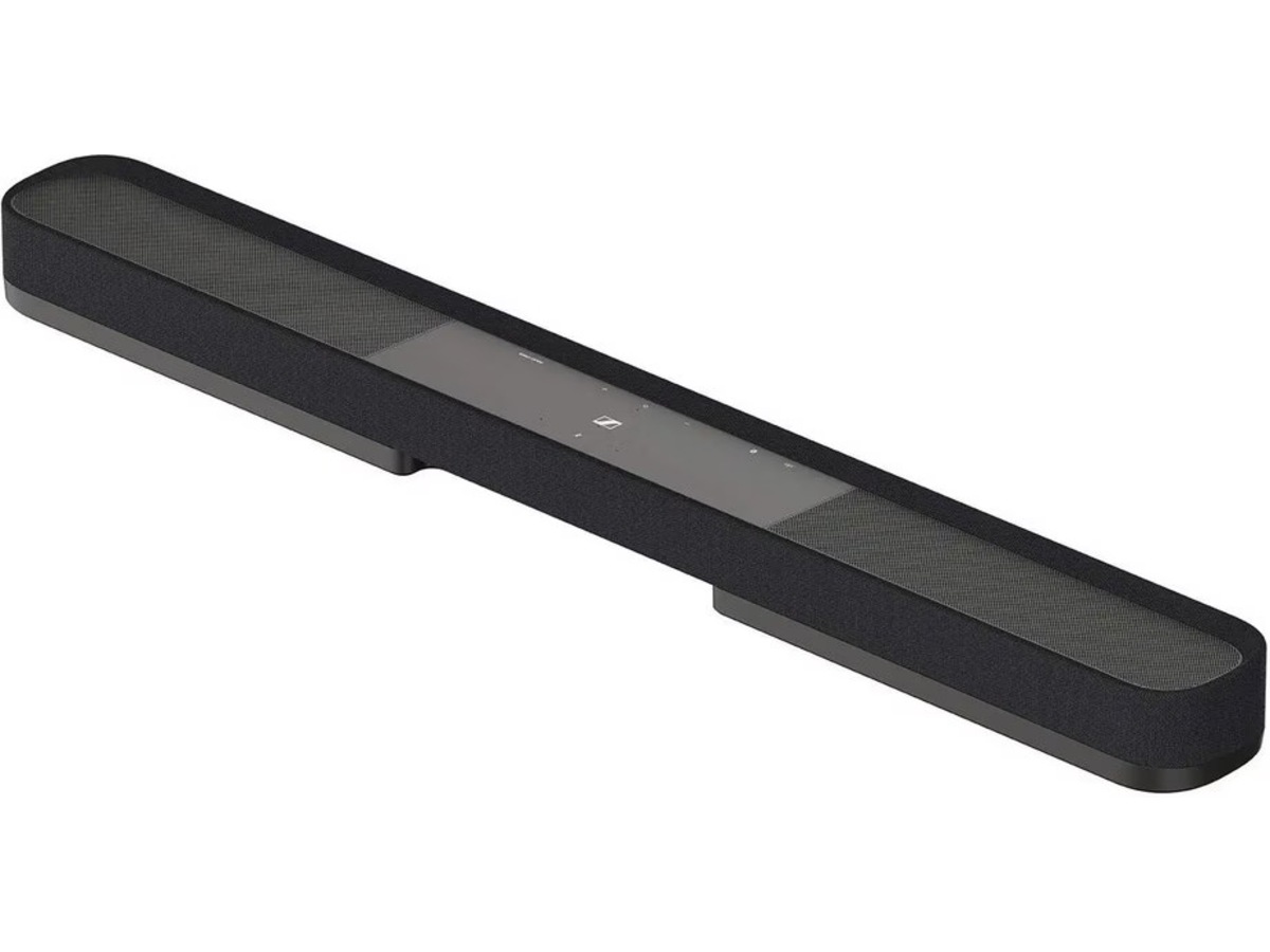 Soundbaren är utformad för att fungera med Sennheisers breda utbud av ljudenheter Sju exklusiva konformade högtalarelement i aluminium med full räckvidd säkerställer skarp återgivning och tydliga mellanregistertoner. De slutna kamrarna innehåller dubbla 4-tums woofers med lång räckvidd för bas ner till 38 Hz.