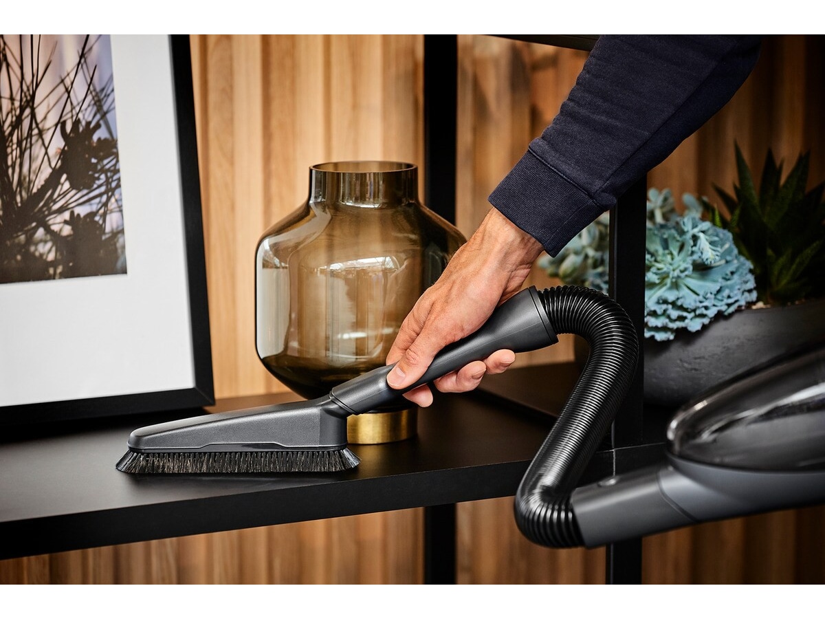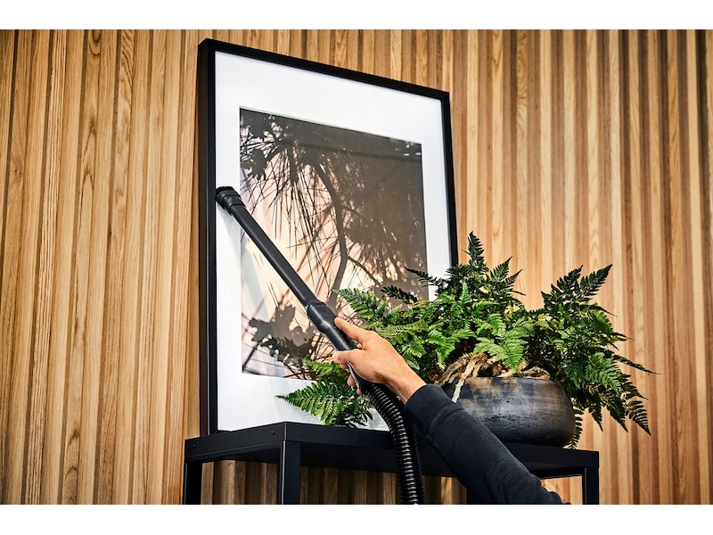 Designad för att hjälpa till med golvstädning, så att du kan nå områden som du annars inte skulle kunna nå. Om du vill förhindra det hårda arbetet med att rengöra de svåråtkomliga platserna är detta kit perfekt för dig. Innehåll: Smidig slang, borste för ömtåliga ytor och liten borste, långt förlängningsmunstycke och förvaringslåda.