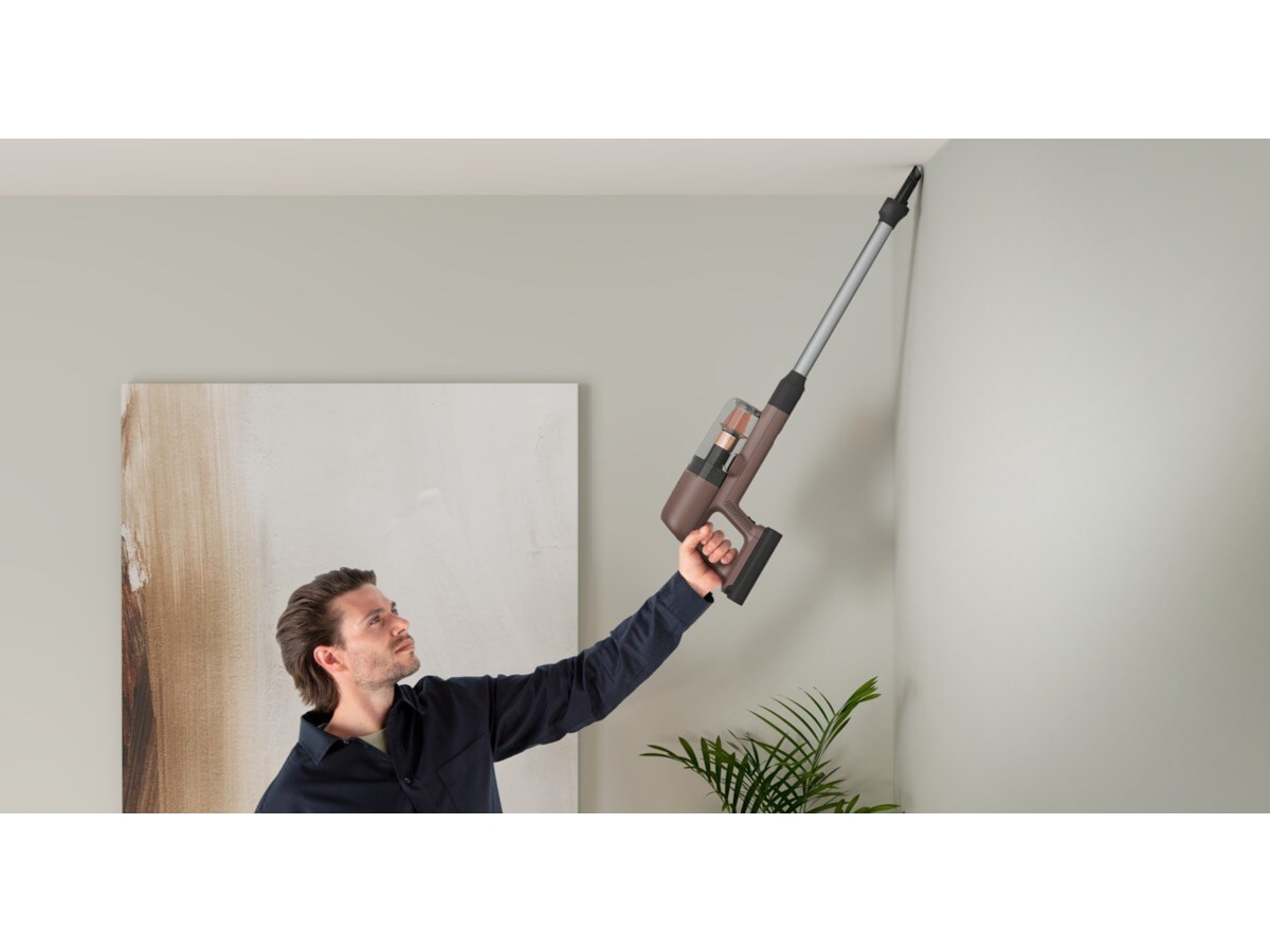 Det avancerade 5-stegs filtreringssystemet fångar upp upp till 99,9 % av det fina damm från ytor, vilket motsvarar storleken på mikroorganismer, samt farliga partiklar som föroreningar och allergener, vilket ger dig sinnesfrid att leva i ett mer hygieniskt och hälsosammare hemmiljö.