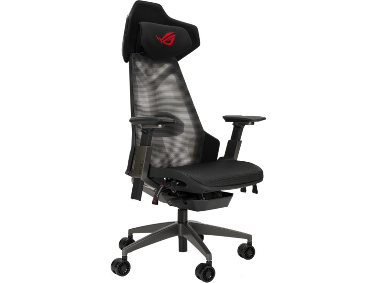 ROG Destrier Ergo Gaming Chair kanaliserar utseendet på ett cybernetiskt exoskelett och lägger till en futuristisk kant till alla spelupplägg.
