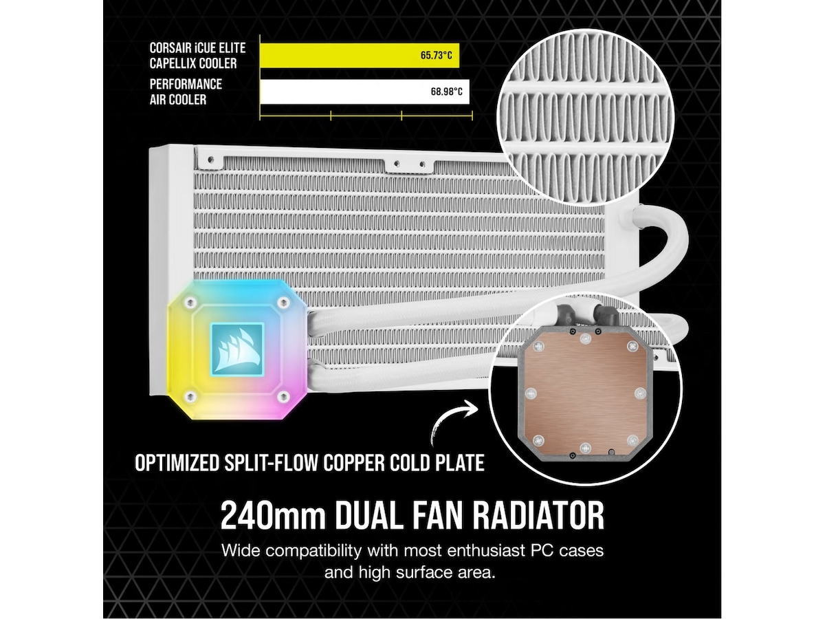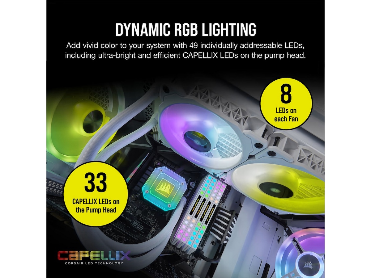 ELITE CAPELLIX kylpumphuvudet rymmer 33 ultraljusa CAPELLIX RGB-lysdioder som passar till dess RGB-fläktar. När du lägger till kraftfull kylning med låg ljudnivå till mixen kommer ditt system att se bra ut och fungera ännu bättre.