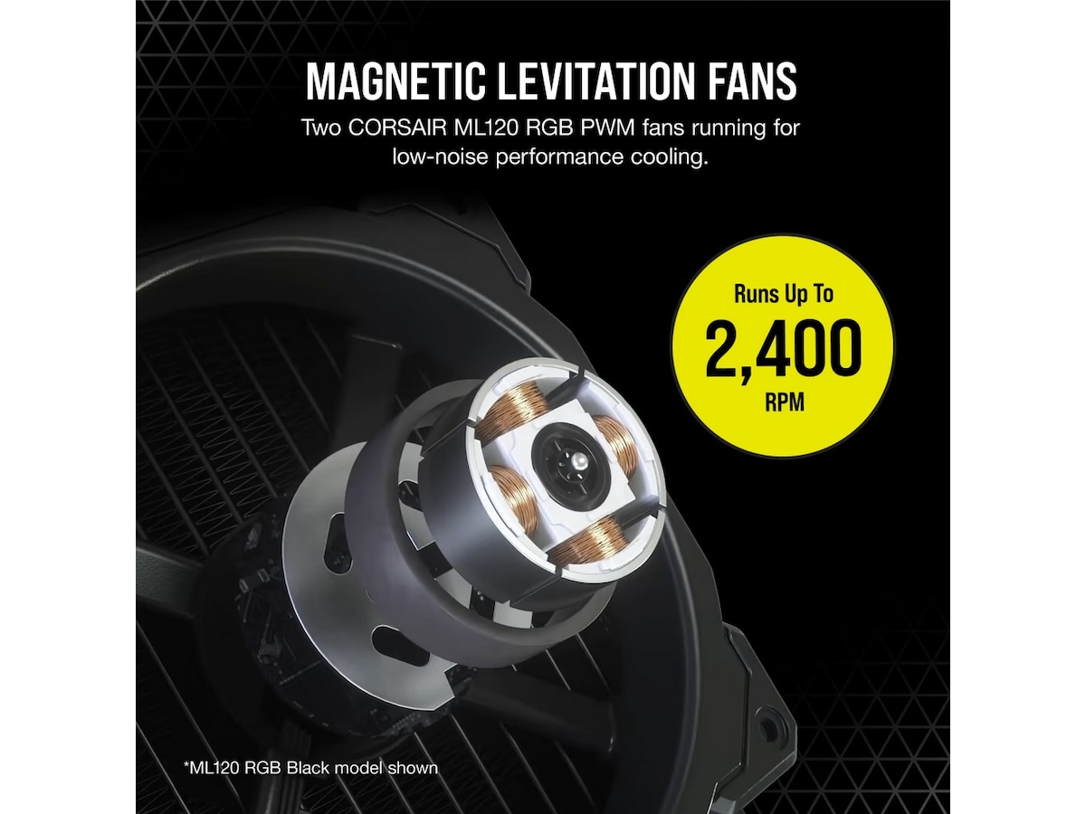 CORSAIR ML RGB-serien PWM-fläktar levererar kraftfullt luftflöde för extrem CPU-kylningsprestanda, med åtta RGB-lysdioder per fläkt.