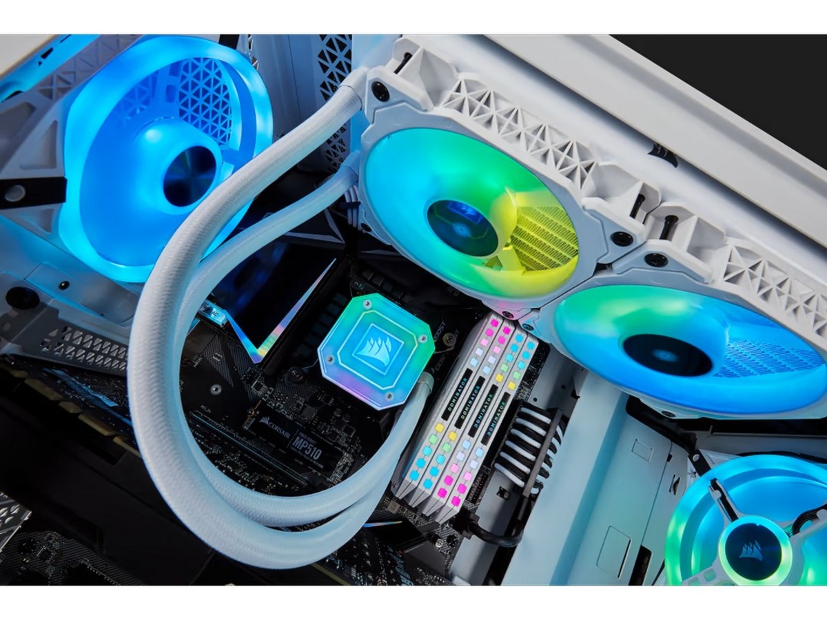 Zero RPM-kylningsprofiler i CORSAIR iCUE-programvaran gör att fläktarna stannar helt vid låga temperaturer, vilket eliminerar fläktljud.