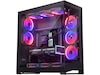 Nästan sömlösa glaspaneler för en perfekt överblick över alla dina systemkomponenter. Unik layout med moderkortet i centrum och fläktar runt om.