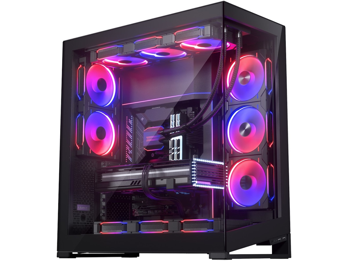 Phanteks NV9 är ett fullstort chassi, med en fantastisk nästan sömlös glasvy och stöd för tolv 140 mm fläktar och trippel 420+280 radiatorer samtidigt. Efter samma omisskännliga design av NV7, framhäver den systemkomponenterna med moderkortet i centrum. I kombination med en stark och definierande yttre ram fångar den och accentuerar hårdvarukomponenterna. Med en ren design från alla håll låter NV9 dig placera ditt system fritt utan den traditionellt stökiga baksidan. Glaspanelerna erbjuder en nästan sömlös vy av insidan för att ytterligare fokusera på systemkomponenterna.
