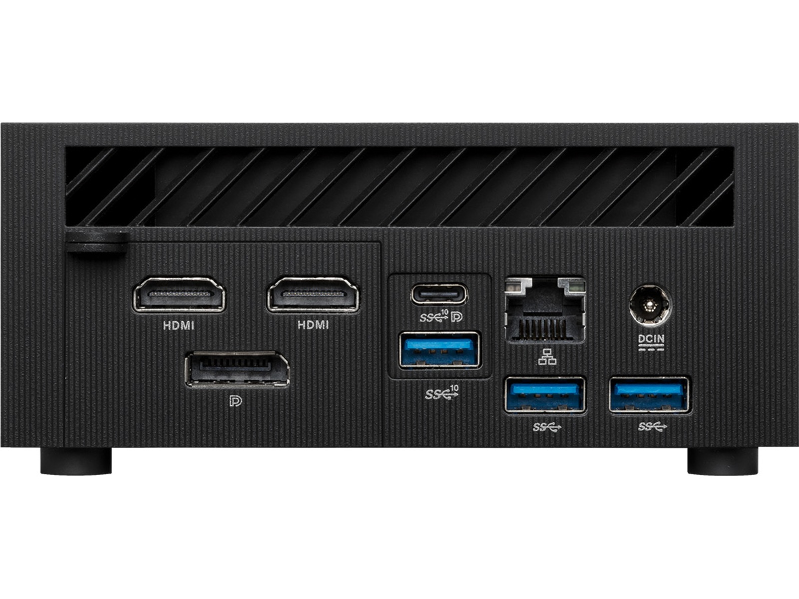 2 x HDMI, 4 x USB 3.2 Gen 1, 1 x hörlurar/mikrofon, 1 x USB 3.2 Gen 2, 1 x DisplayPort/USB-C 3.2 Gen 2 (Strömförsörjning), LAN (2.5Gigabit Ethernet), 1 x DisplayPort 1.4, 1 x USB-C 3.2 Gen 1 |