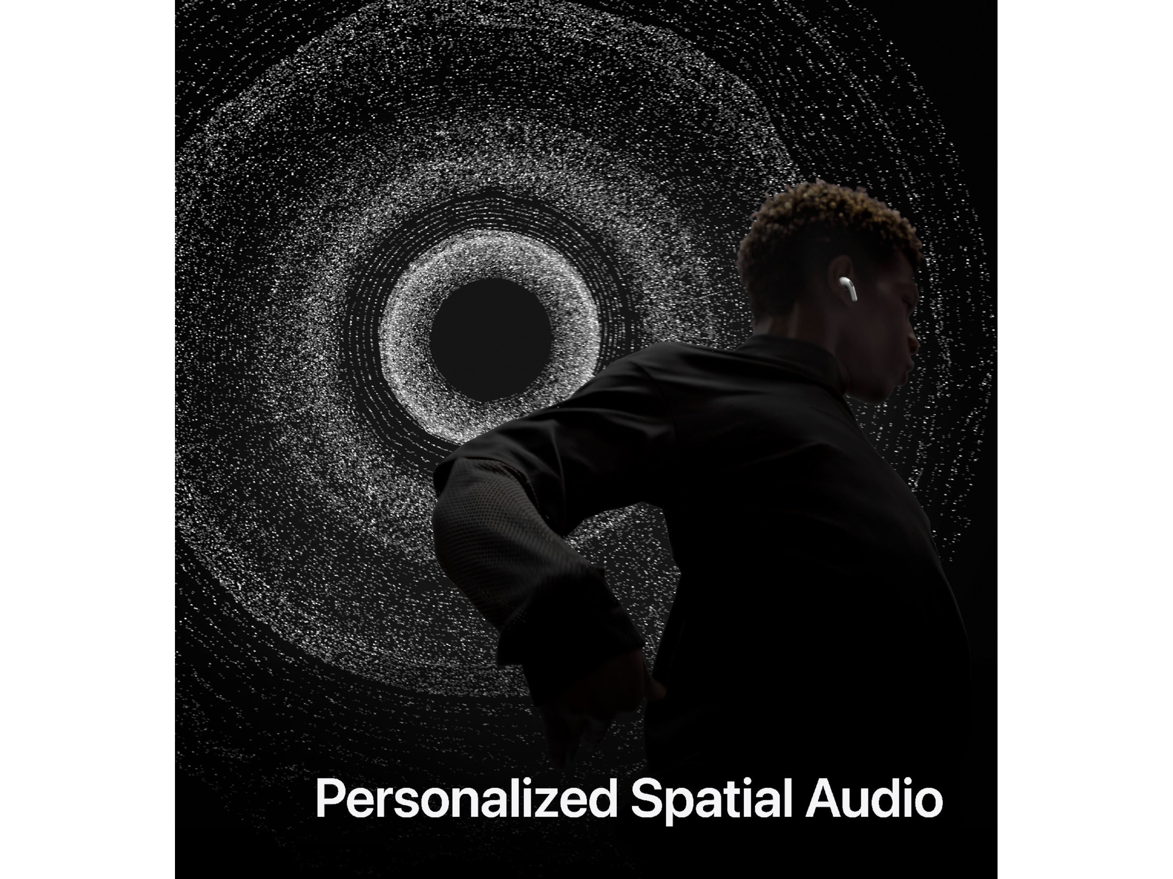 Med ljud anpassat efter din unika öronform samt spårning av huvudrörelser ger AirPods Pro 2 en uppslukande lyssningsupplevelse som placerar ljudet runt omkring dig. [3] Du kan även höra vissa låtar, tv-program och filmer i Dolby Atmos.