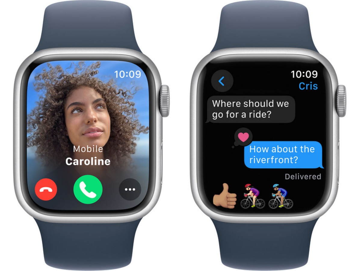 Skicka ett meddelande, ring ett samtal, lyssna på musik och poddar, använd Siri och få aviseringar när du är på språng. Apple Watch Series 9 (GPS) paras ihop med iPhone eller Wi-Fi så att du alltid är ansluten.