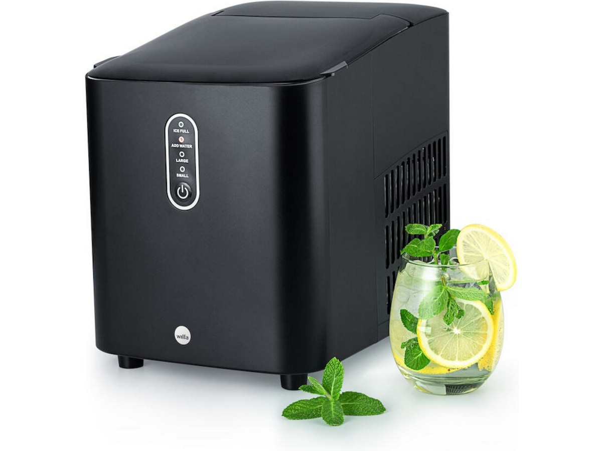 Glacier är en effektiv iskubsmaskin i stilren mattsvart design, som gör 12 kg isbitar på 24 timmar. Den är kompakt vilket innebär att den passar på köksbänken eller lättillgänglig i ett köksskåp för att ge dig färska isbitar varje dag.