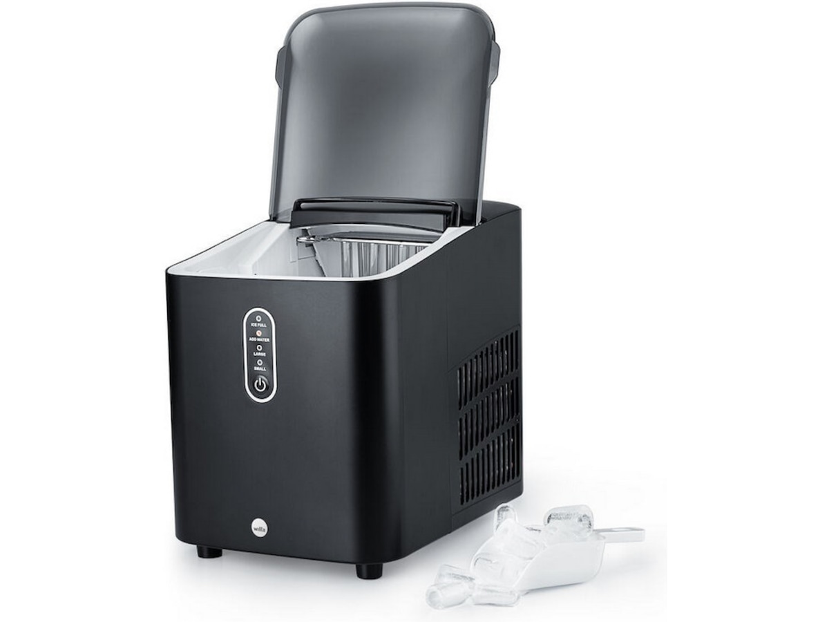 Kontrollpanelen har flera funktioner. Där kan du välja mellan stora eller små isbitar som låter dig veta när behållaren är full och när du behöver fylla på med mer vatten.