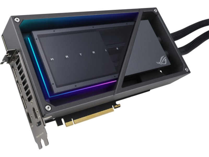 ROG Matrix GeForce RTX™ 4090 levererar absolut toppprestanda samtidigt som den bibehåller tyst termisk drift, via flytande termisk metallblandning på GPU-matrisen, en förstklassig 360 mm AIO-kylare och en fantastisk ihålig metallramdesign.