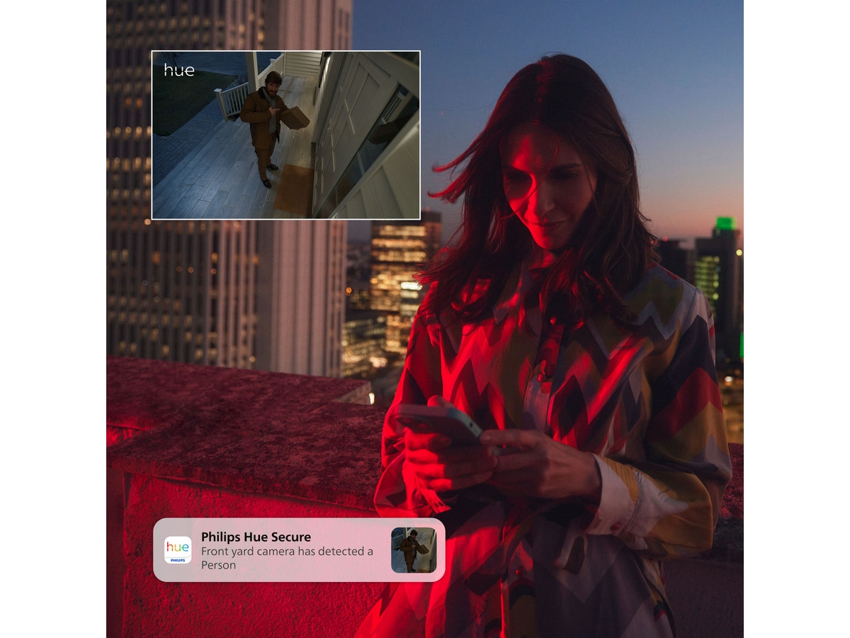 En Hue Bridge ger dig hela uppsättningen av smarta hemsäkerhetsfunktioner: ljus- och ljudlarm, automatiserad närvaroimitation och möjligheten att utöka dina inställningar för hemsäkerhet – eller smart belysning.