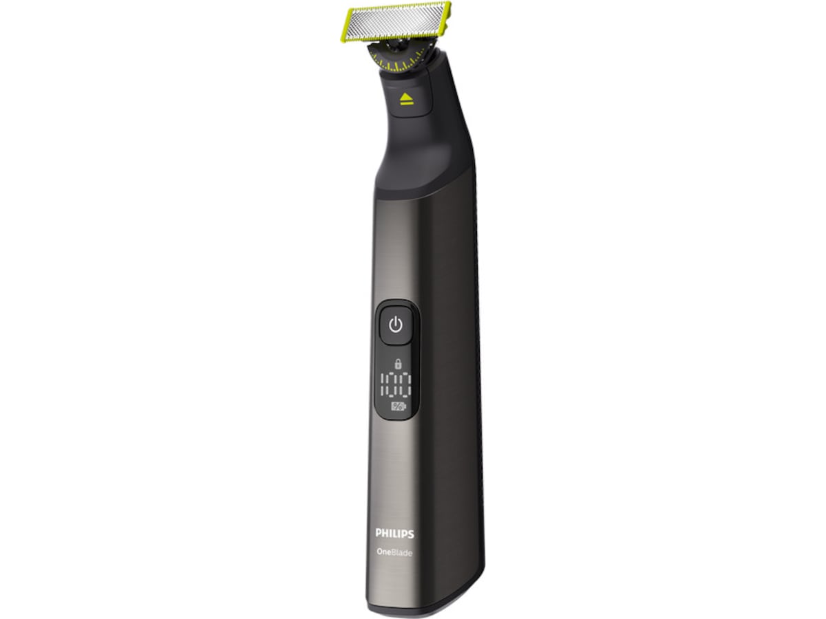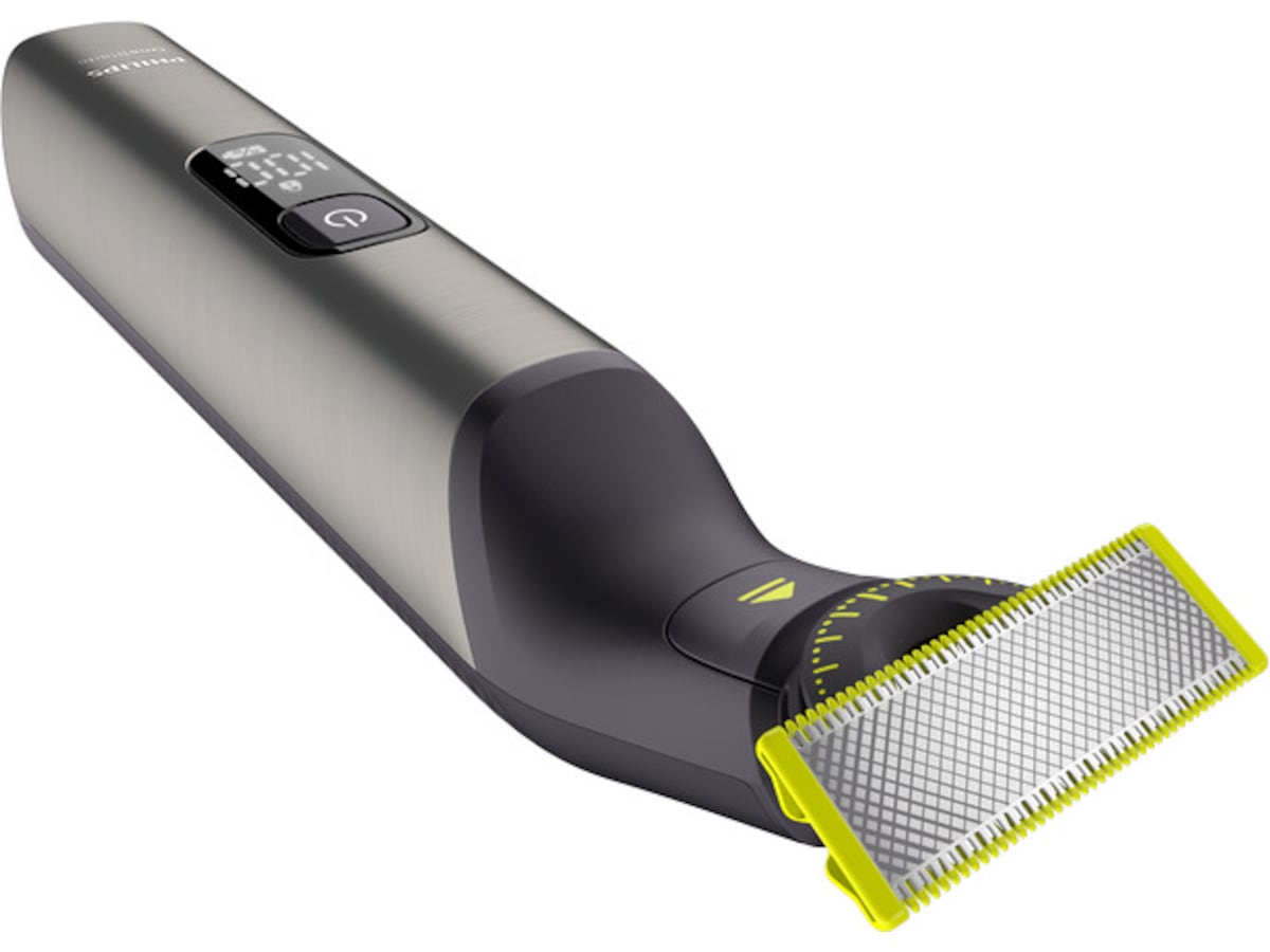 Philips OneBlade Pro Face + Body trimmar, trimmar och rakar alla hårlängder. Du får ett blad för ansiktet och ett med hudskydd för kroppen. Inga fler redskap behövs. OneBlade gör jobbet.