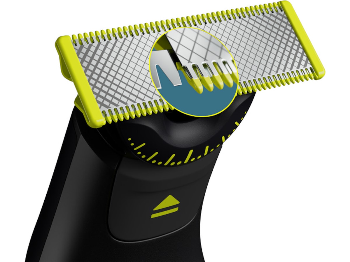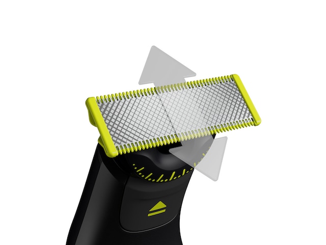 Philips OneBlade är en revolutionerande teknik utvecklad för ansiktshår. Den kan raka alla hårlängder. Det dubbla skyddssystemet – en glidbeläggning och rundade spetsar – gör rakningen enklare och bekvämare. Raktekniken består av en snabbrörlig klippenhet (12 000 gånger per minut), så den är effektiv även på längre hår.