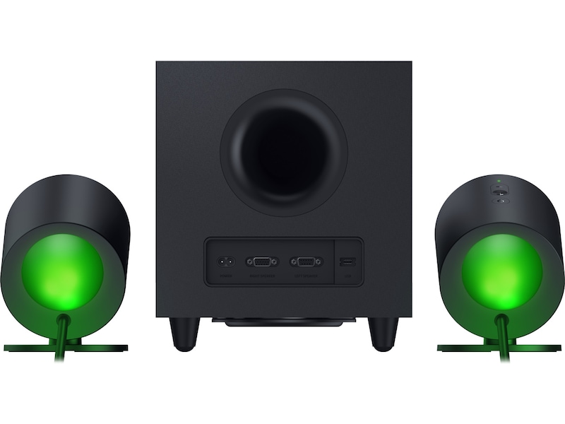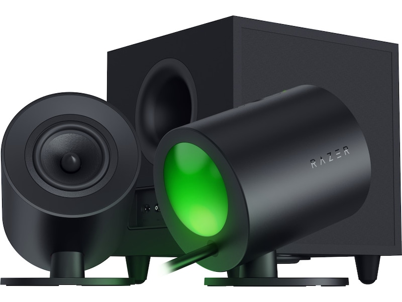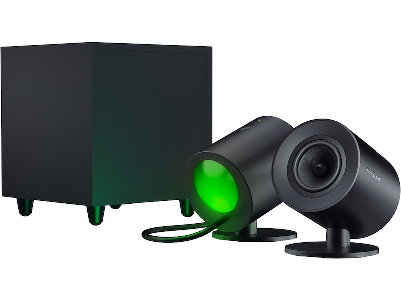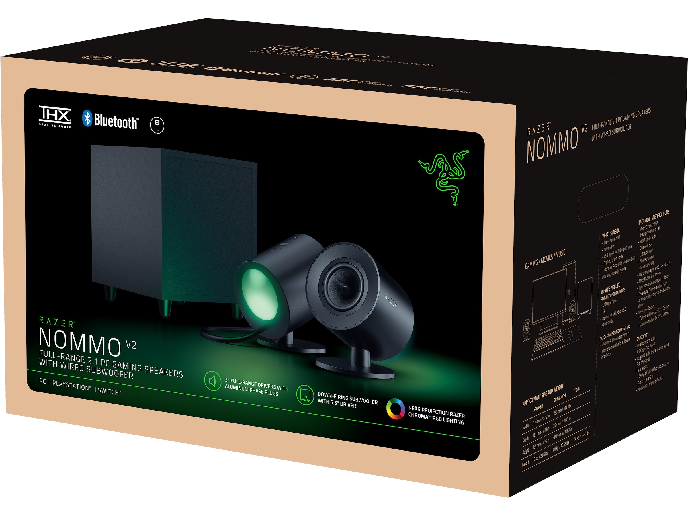 Ställ in ljudscenen för seger med Razer Nommo V2 – ett spelhögtalarsystem och subwoofer med full räckvidd designad för högtrohet, rumsfyllande ljud och fängslande bas.