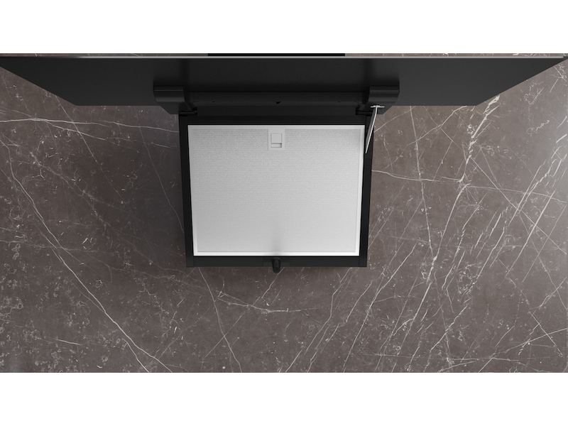 Stor öppningsvinkel på glasplattan med låsfunktion för enkel åtkomst till filtret och enkel rengöring.