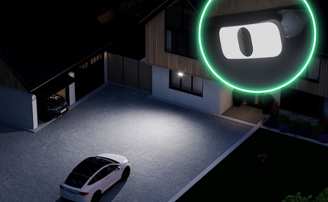 En kraftfull ljussköld från världens första 100 % trådlösa strålkastarkamera.
