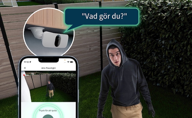 Inbyggd högtalare och mikrofon låter dig tala med familj och besökare eller avskräcka inbrottstjuvar som om du vore där själv.