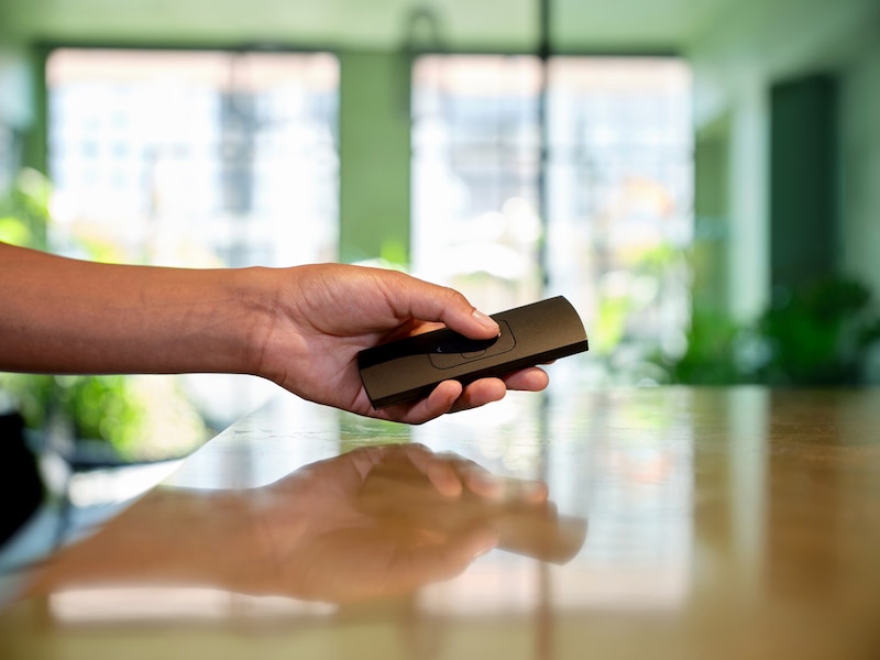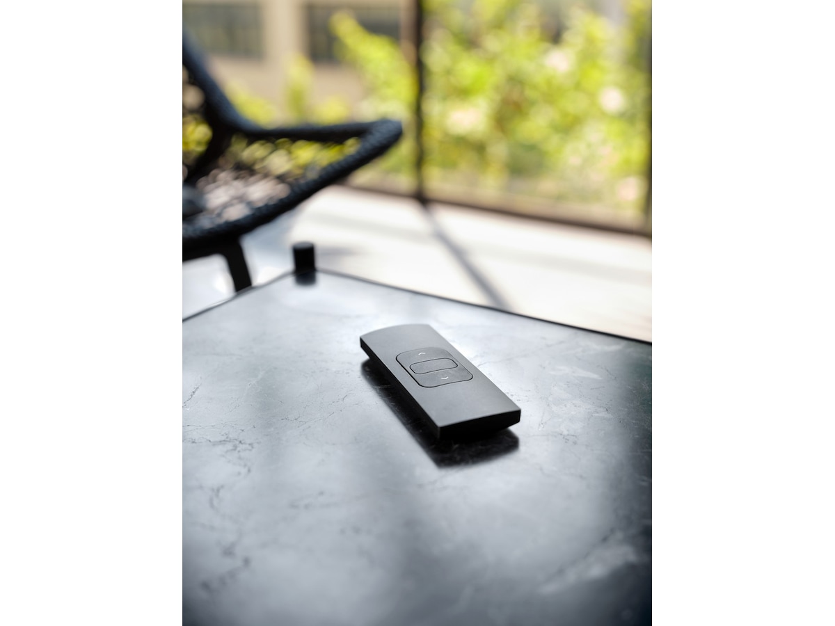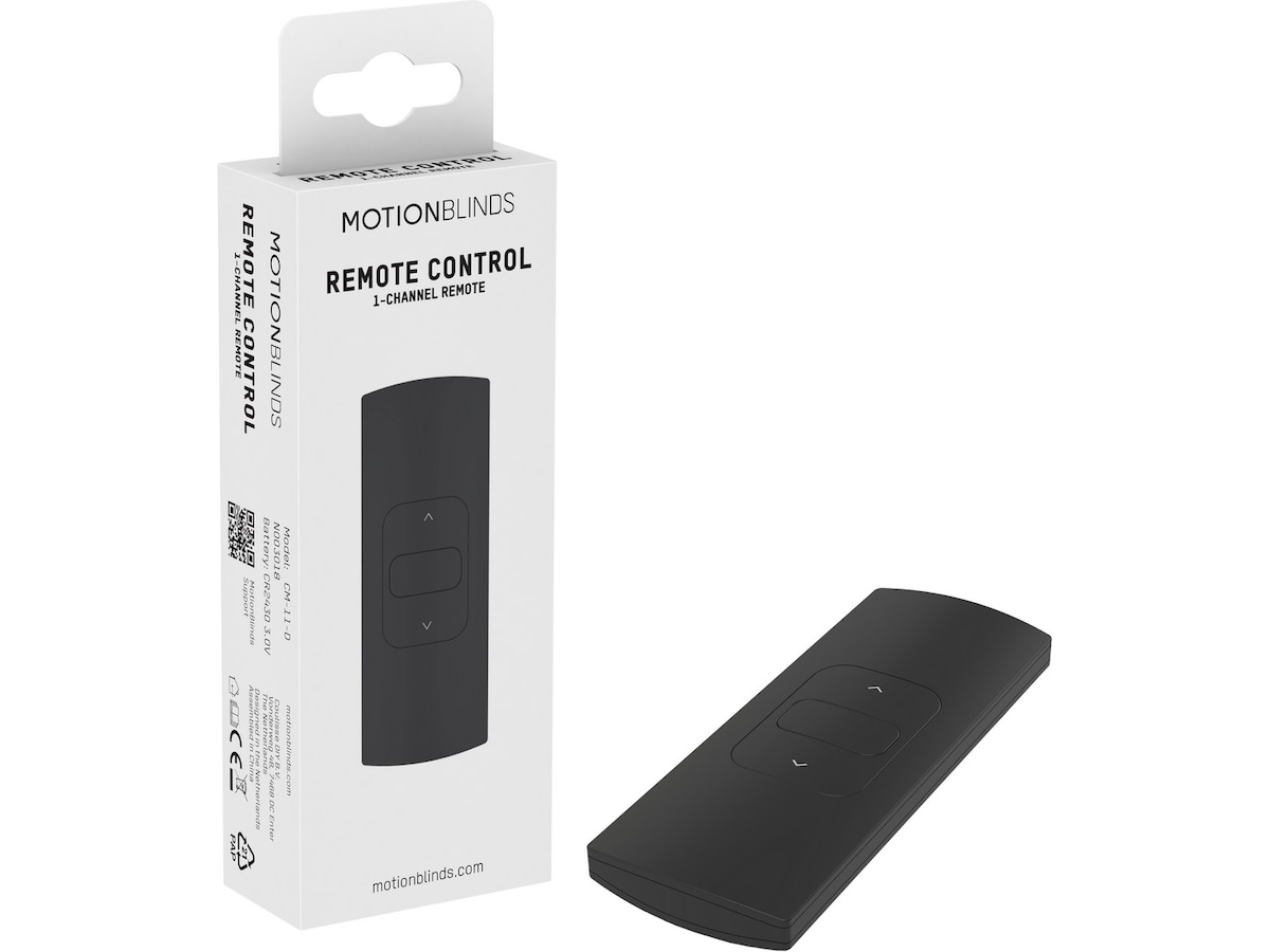 Enkanalig fjärrkontroll för MotionBlinds-drivna fönsterbeklädnader. Styr dina fönstertäckningar på distans. Öppna, stäng eller placera dina fönsterbeklädnader på din favoritposition.