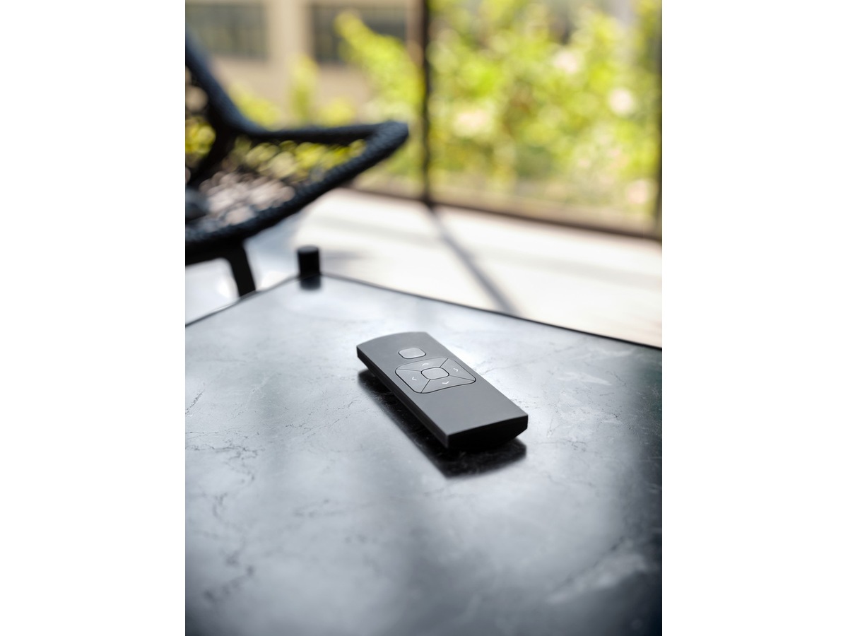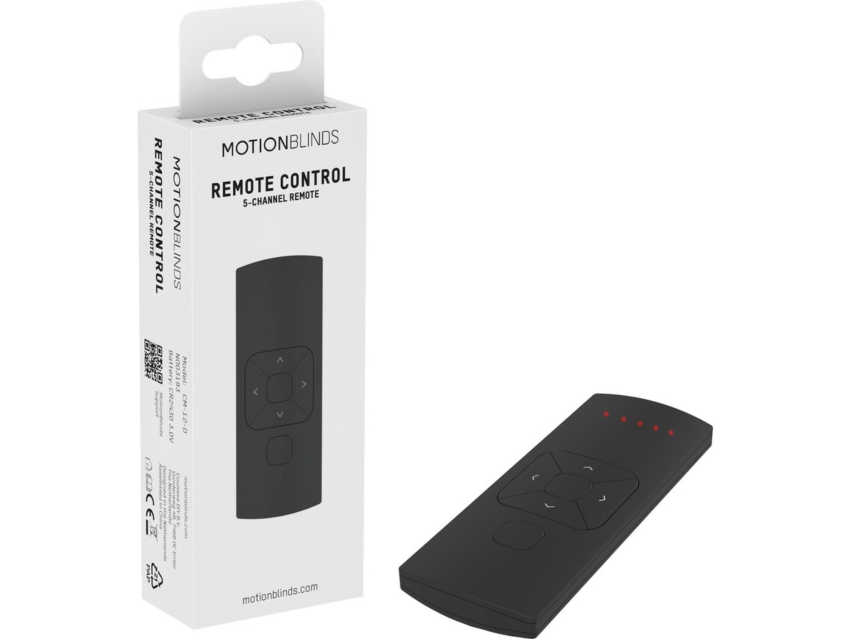 Styr och programmera dina motoriserade fönsterbeklädnader med en knapptryckning. MotionBlinds fjärrkontroller har en räckvidd på cirka 30 meter. De har fem kanaler till vilka en eller flera fönsterbeklädnader kan anslutas, som du sedan kan manövrera samtidigt. Med fjärrkontrollen kan du flytta fönstertäckningen till vilken position du vill och till ett föredraget mellanläge som du själv kan ställa in.