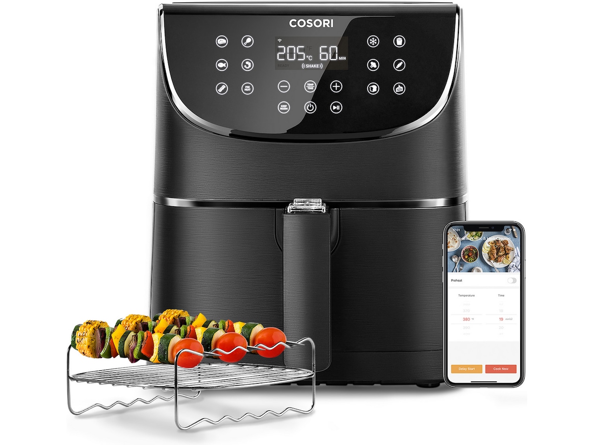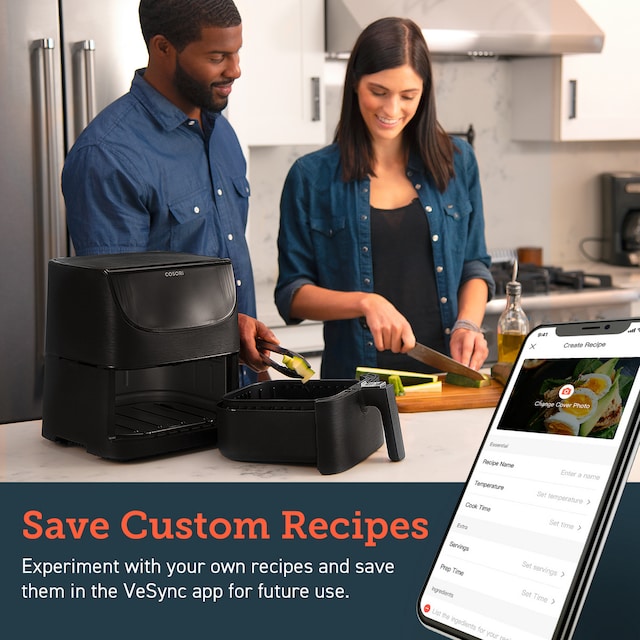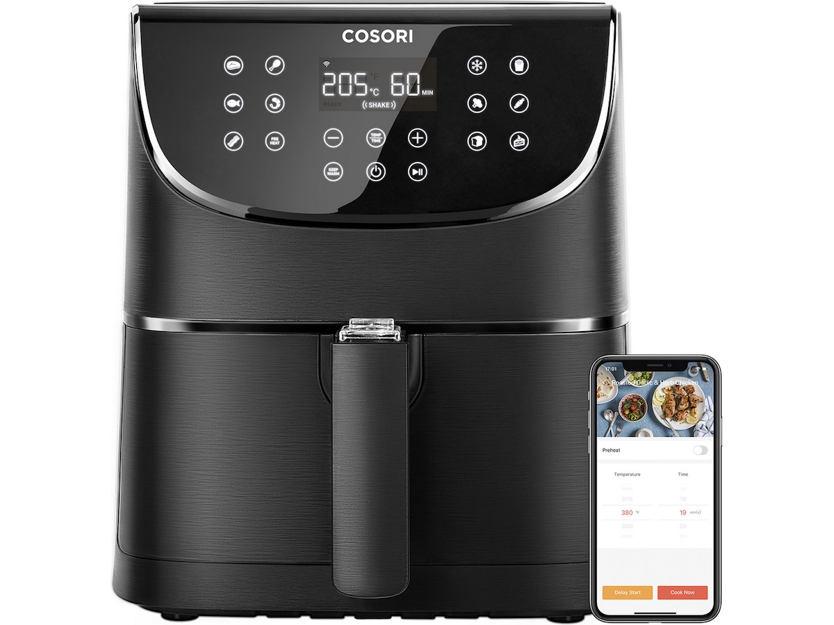 Vinnare av 2019 Red Dot Award och stolt designad i Kalifornien, COSORI VeSync Pro Smart 5.8-Quart Air Fryer har inbyggda smarta funktioner som gör att du kan fjärrjustera inställningar och övervaka måltider från din smartphone.