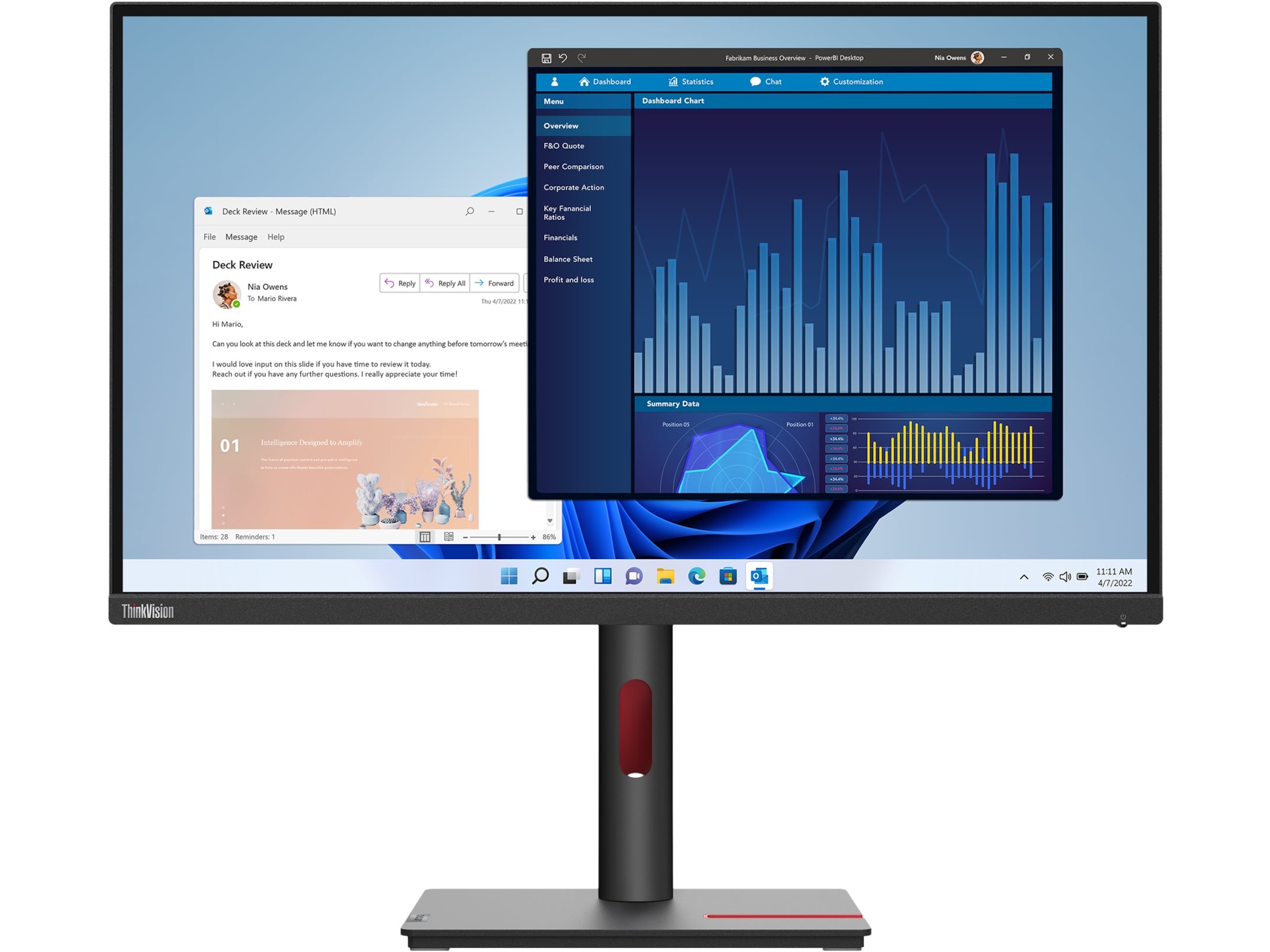 ThinkVision T27i-30-skärmens IPS-skärm är en njutning för dina ögon med en ultrabred betraktningsvinkel som ger hög färgnoggrannhet och bildkvalitet. Denna stora 27-tumsskärm känns ännu större med 3-sidiga kantlösa ramar. Rik skärmkvalitet förbättras med 99 % sRGB-färg för en imponerande tittarupplevelse. Komfort är nyckeln med ThinkVision T27i-30 Monitor med Natural Low Blue Light-teknik som hjälper till att minimera visuell trötthet och påfrestning, så att dina ögon skyddas.