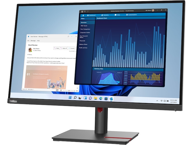 ThinkVision T27i-30-skärmens IPS-skärm är en njutning för dina ögon med en ultrabred betraktningsvinkel som ger hög färgnoggrannhet och bildkvalitet. Denna stora 27-tumsskärm känns ännu större med 3-sidiga kantlösa ramar. Rik skärmkvalitet förbättras med 99 % sRGB-färg för en imponerande tittarupplevelse. Komfort är nyckeln med ThinkVision T27i-30 Monitor med Natural Low Blue Light-teknik som hjälper till att minimera visuell trötthet och påfrestning, så att dina ögon skyddas.