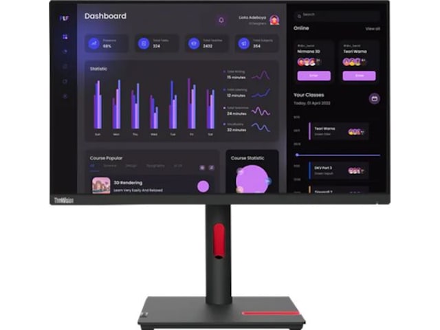 Med 90 % skärmfastighet är den byggd med en 3-sidig NearEdgeless ramdesign, så att din vy har färre distraktioner och mer av det som behöver ses. Integrerad Natural Low Blue Light-teknik reducerar giftigt blått ljus samtidigt som den levererar högtrogna färger. Dessutom låter ThinkVision T24i-30 Monitors TÜV Rheinland Eye Comfort-certifiering dig göra mer genom att skydda dina ögon från trötthet även under långa arbetsdagar.