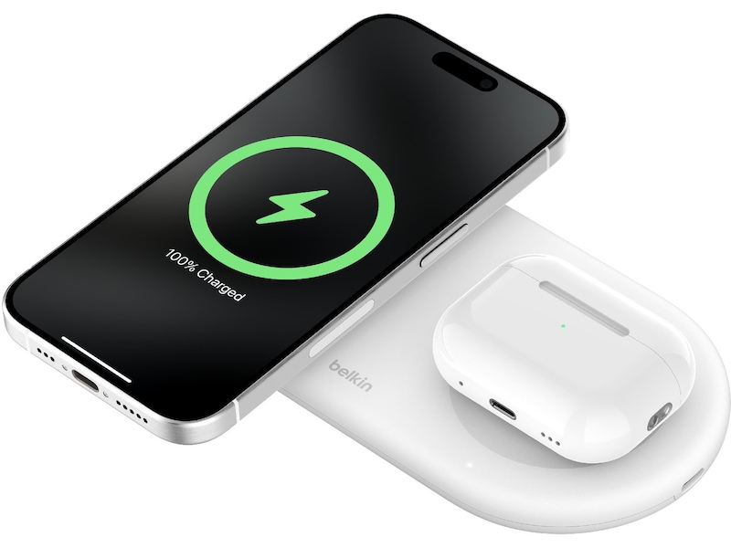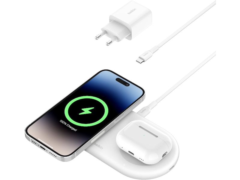 Belkin Qi2 15W 2-in-1 trådlös laddare (vit)