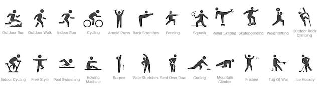 *21 träningslägen är förinstallerade i klockan. För att få nya träningslägen, sök efter TicExercise och TicHealth i Google Play Butik och uppdatera båda apparna till de senaste versionerna.