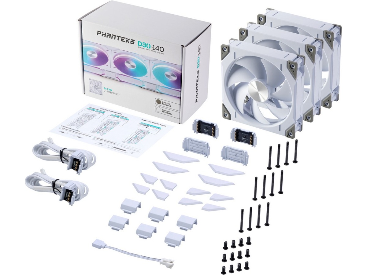Phanteks D30-140 är utrustad med integrerad D-RGB-belysning genom hela ramen och bladen på alla sidor. Flera D30-140 fläktramar kan kopplas ihop som en med bryggkopplingar och skruvtäckplåtar för att minska kablar, vilket resulterar i extremt rena konstruktioner.