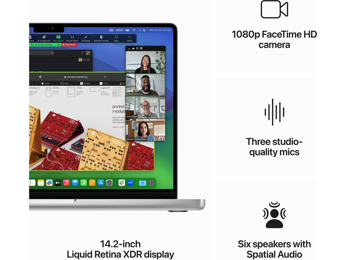 • BRILLIANT PRO DISPLAY – Den 14,2-tums Liquid Retina XDR-skärmen(3) har Extreme Dynamic Range, 1000 nit kontinuerlig ljusstyrka för imponerande HDR-innehåll, upp till 600 nit ljusstyrka för SDR-innehåll och professionella referenslägen som att du kan få jobbet gjort på språng.