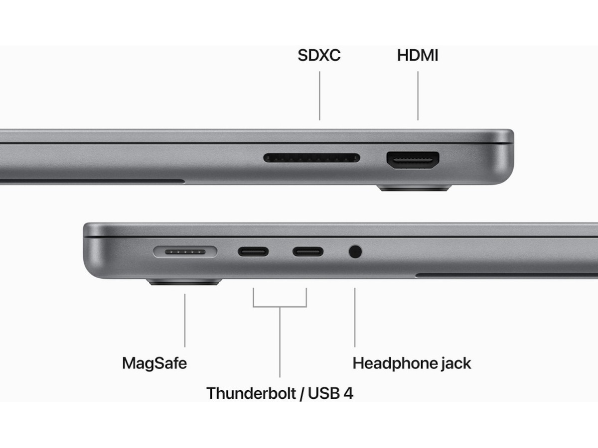 - ANSLUTA TILL ALLT – Denna MacBook Pro har en MagSafe-laddningsport, tre Thunderbolt 4-portar, en SDXC-kortplats, en HDMI-port och ett hörlursuttag. Få snabb trådlös anslutning med WiFi 6E (5) och Bluetooth 5.3. Och du kan ansluta upp till två externa skärmar med M3 Pro, eller upp till fyra med M3 Max.