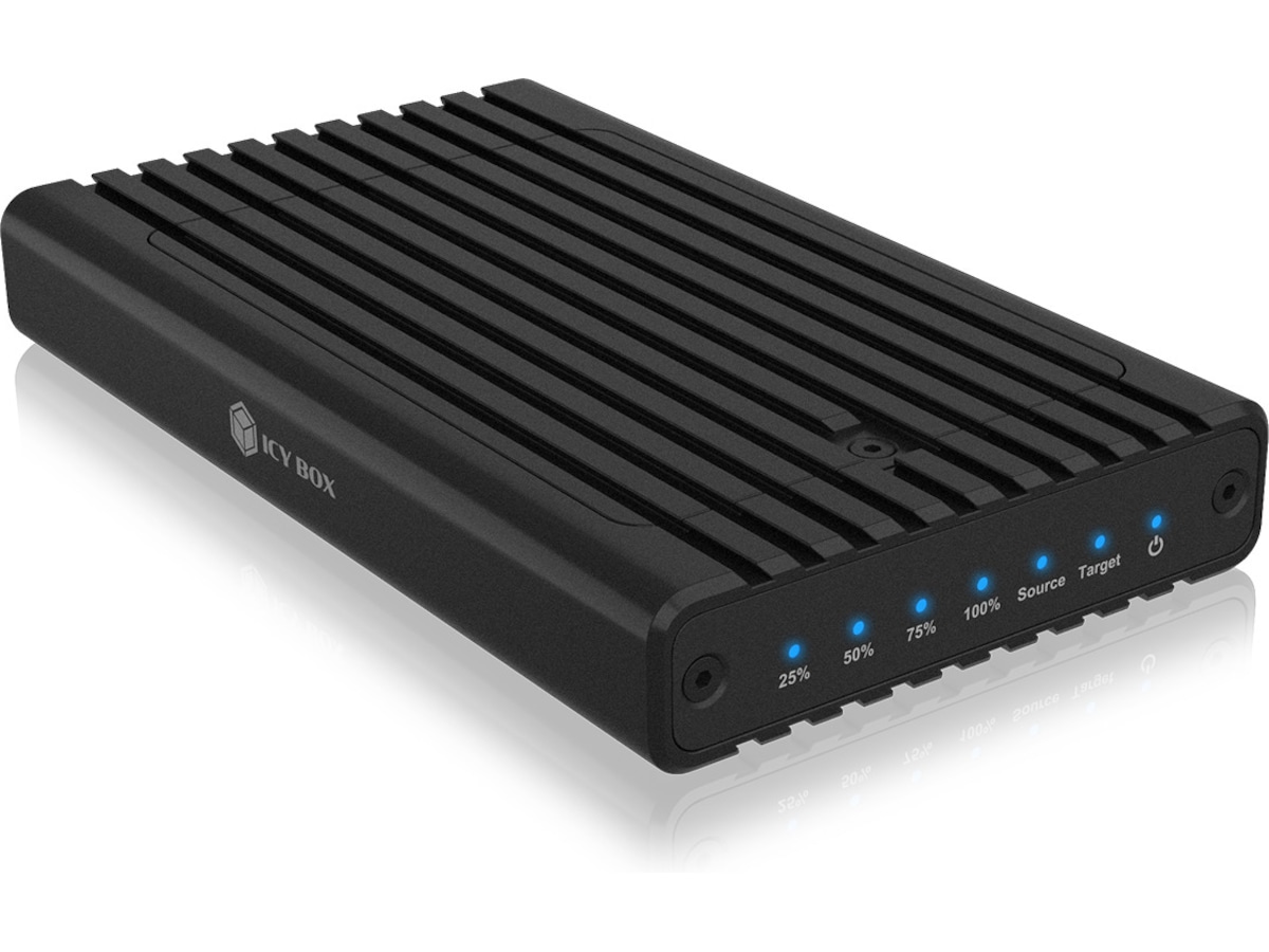 Säker kloning av startbara media eller säkerhetskopior av hela enheten är inga problem med denna externa CloneStation. Du kan snabbt och enkelt skapa bitexakta kloner av en M.2 SSD med en knapptryckning. Statuslysdioderna visar det aktuella förloppet hela tiden.
