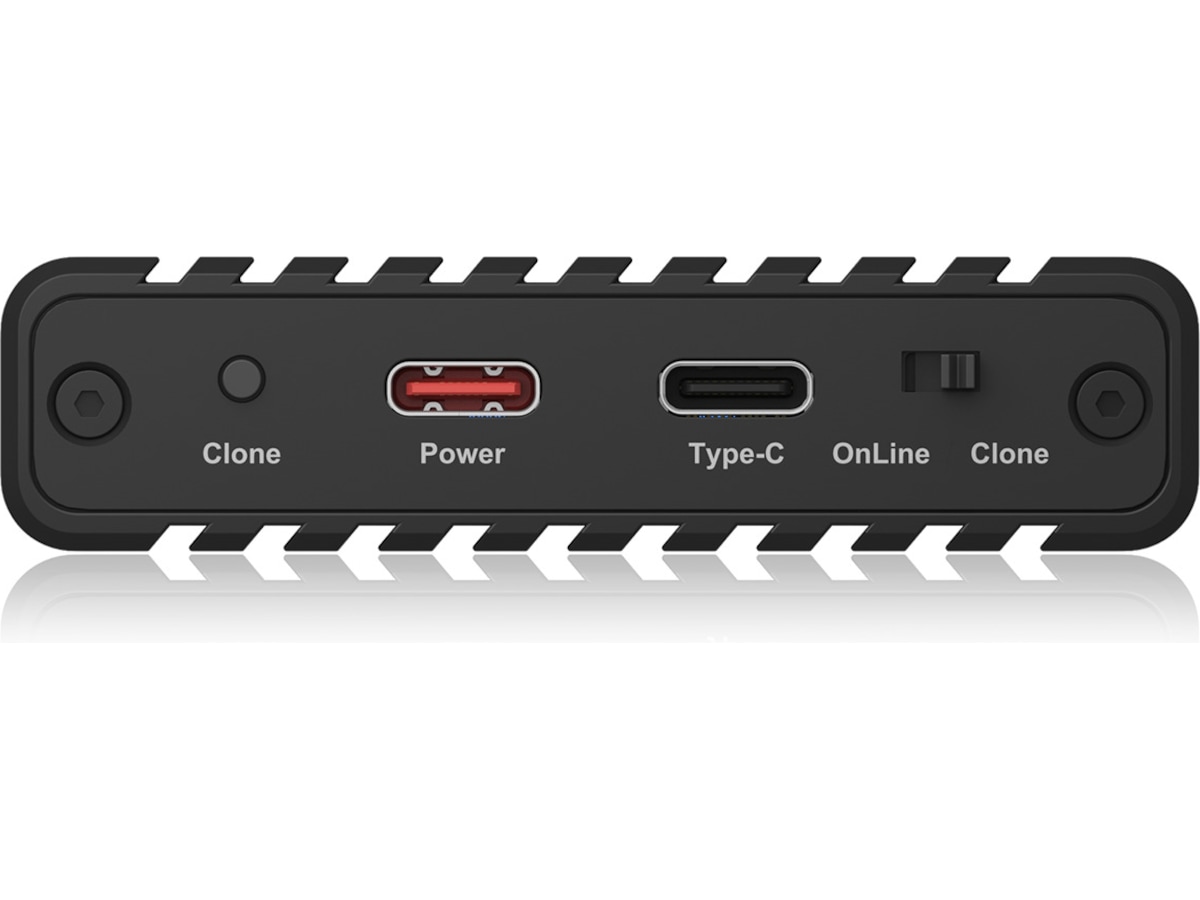 - Högkvalitativt aluminiumhölje: Effektiv värmeavledning genom direkt anslutning av SSD:erna till värmeledningsdynorna i botten av höljets lock kombinerat med externa kylflänsar för att öka ytan