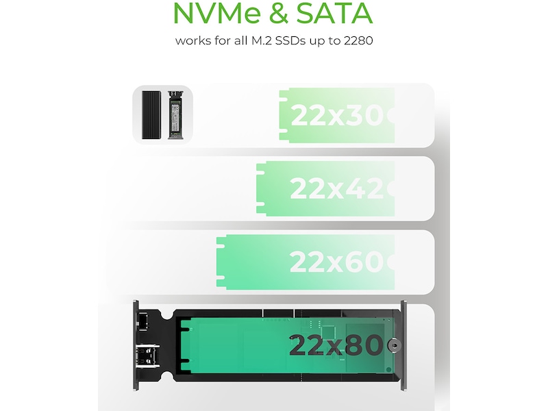 - NVME & SATA: ICY BOX IB-1817MCT-C31 är det rätta valet för din M.2 SSD. Vårt hölje är kompatibelt med både NVMe och SATA SSD och rymmer lagring i populära storlekar upp till 2280