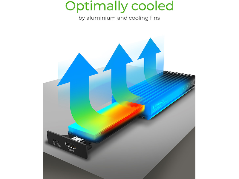 Med IB-1817MCT-C31 har vi optimerat den framgångsrika ICY BOX® IB-1817-serien ytterligare. Vårt snygga aluminiumhölje för M.2 SSD:er är nu kompatibelt med både NVMe och SATA. SSD:er i vanliga storlekar från 2230 till 2280 med upp till 2 TB lagringskapacitet stöds.