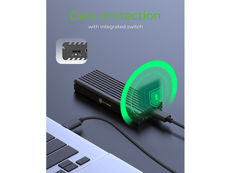 Förlusten av data är absolut irriterande, men kan undvikas med IB-1817MCT-C31 från ICY BOX®. Vårt hölje för M.2 SSD:er har ett skrivskydd som enkelt kan aktiveras och avaktiveras igen med en switch. Så din data är alltid säker.