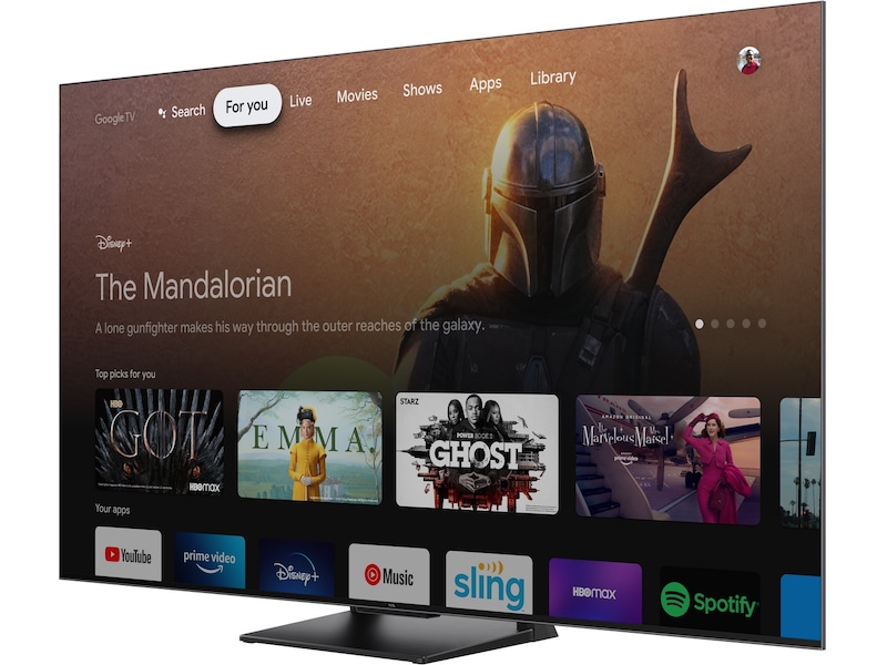 "Google TV:s handsfree röstkontroller ger fullständig flexibilitet. Utan att lämna stolen kan du välja innehåll, starta appar, sätta på ditt set, byta ingång, söka efter filmer och mycket mer. Det är enkelt, användarvänligt och otroligt bekvämt.