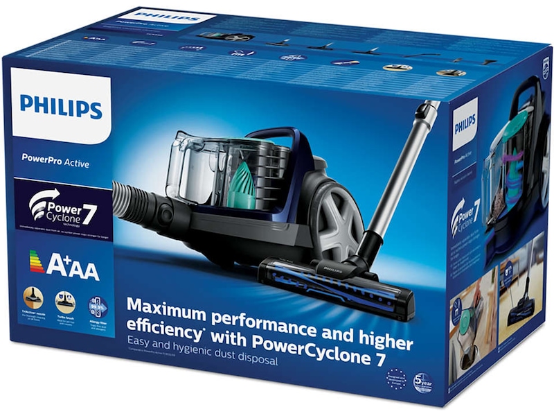 Medföljande verktyg Utdragbart rör, Turboborste, Munstycke för hårda golv, Möbelmunstycke, Borstanslutning, Munstycke för trånga utrymmen, TriActive+-munstycke