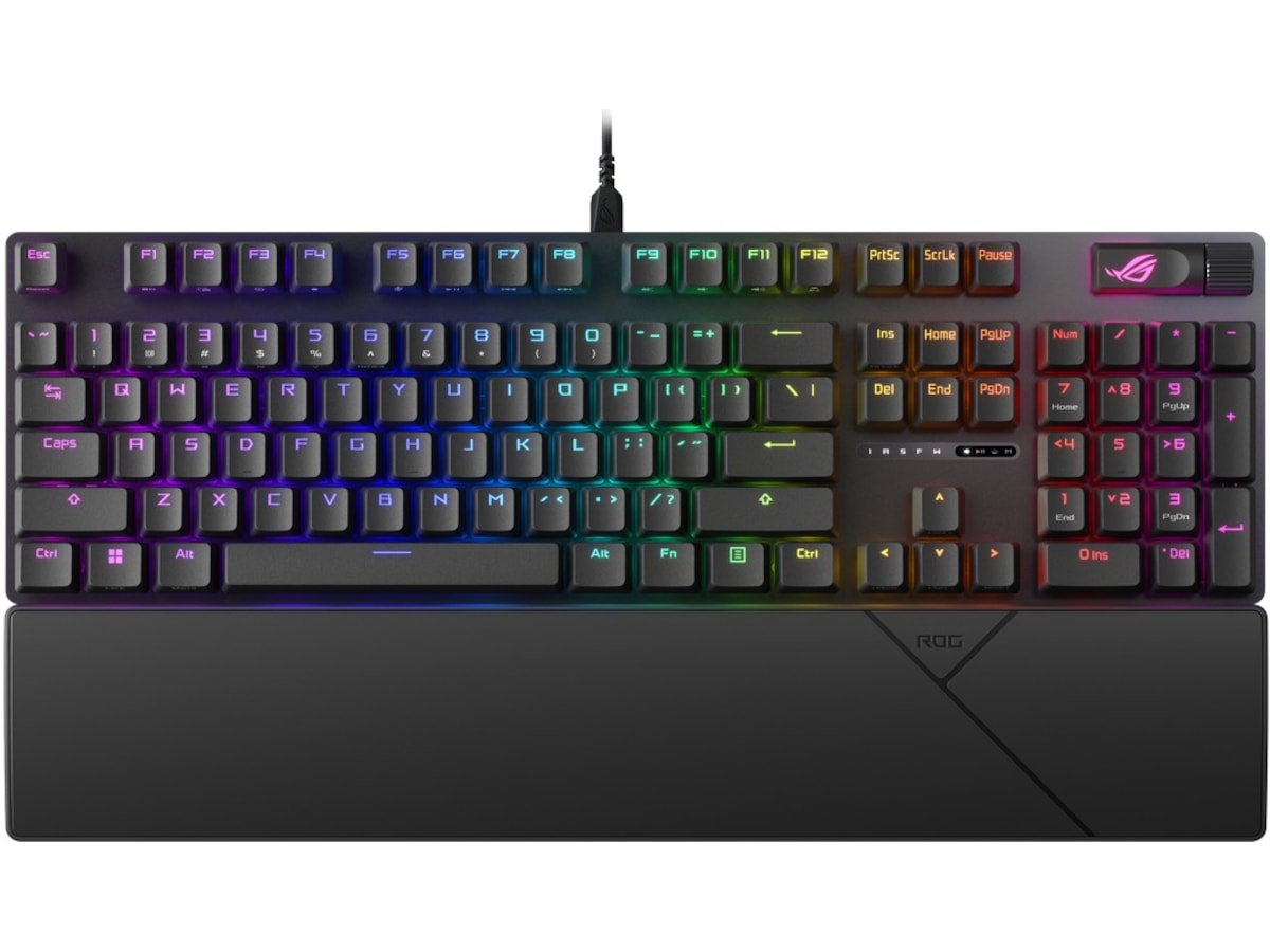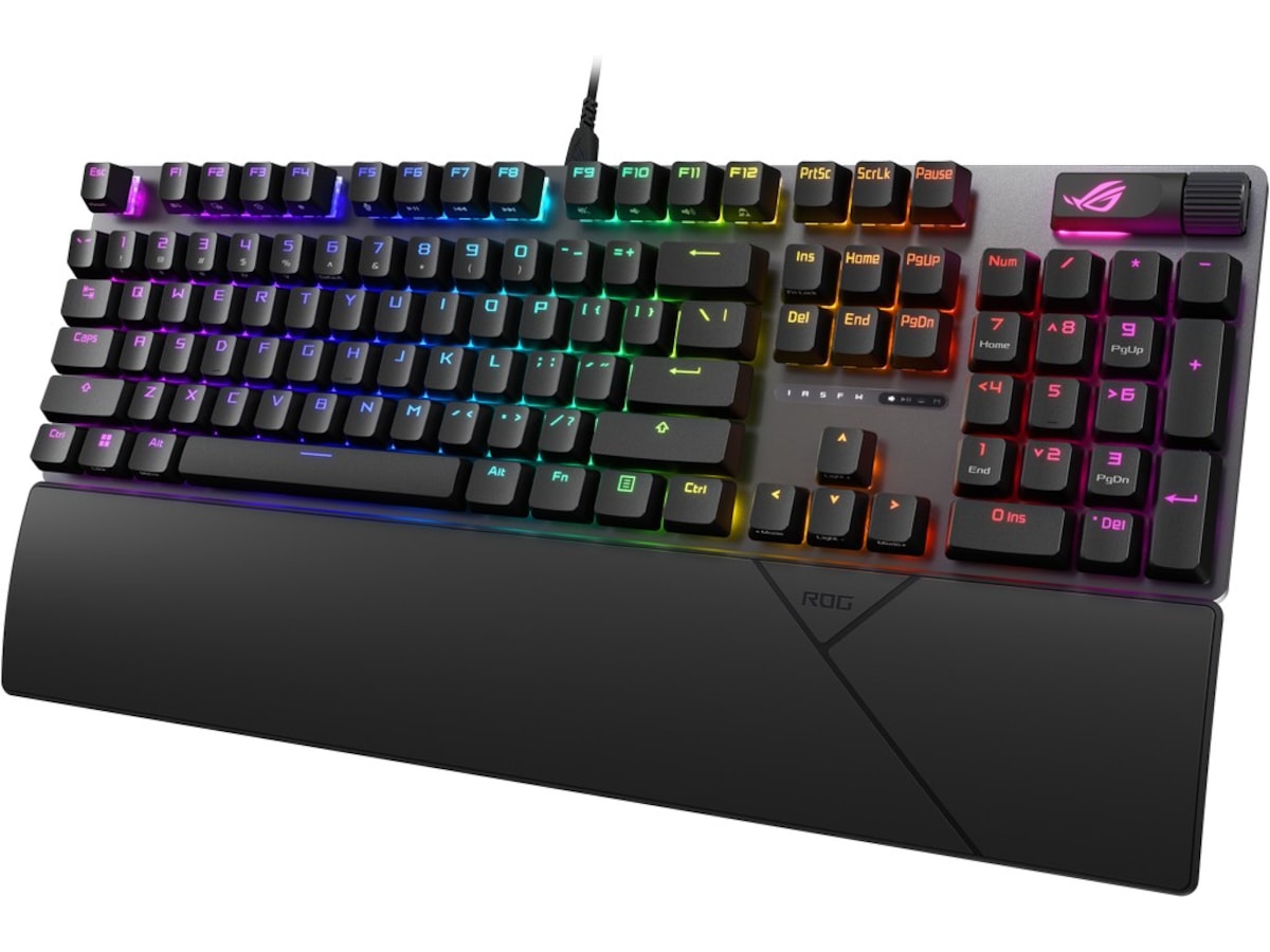 ROG Strix Scope II är en allround battlestation med försmorda ROG NX mekaniska strömbrytare med förbättrad stabilitet och minskad wobble, PBT doubleshot keycaps och UV-belagda ABS keycaps för bra känsla och glansmotstånd, multifunktions snabbkontroller, streaming snabbtangenter, och ett avtagbart handledsstöd.